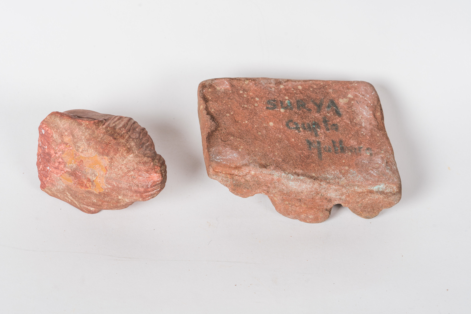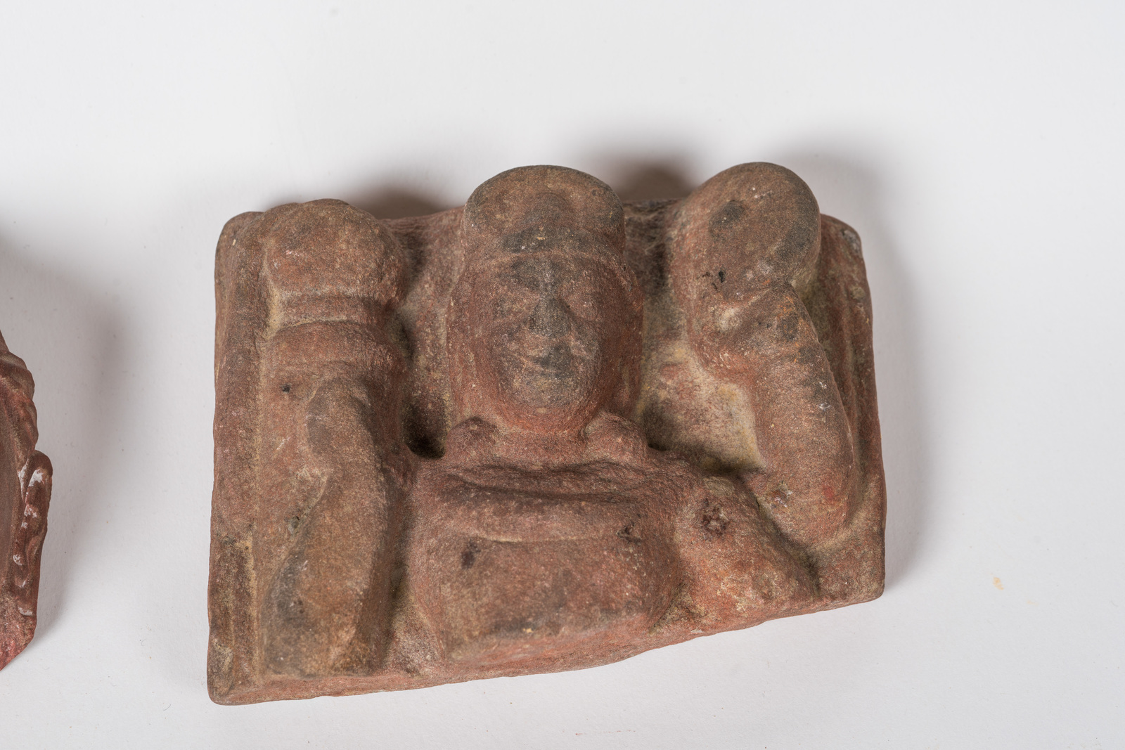 Arte Indiana Lotto composto da due frammenti di sculture in arenaria rossa:...