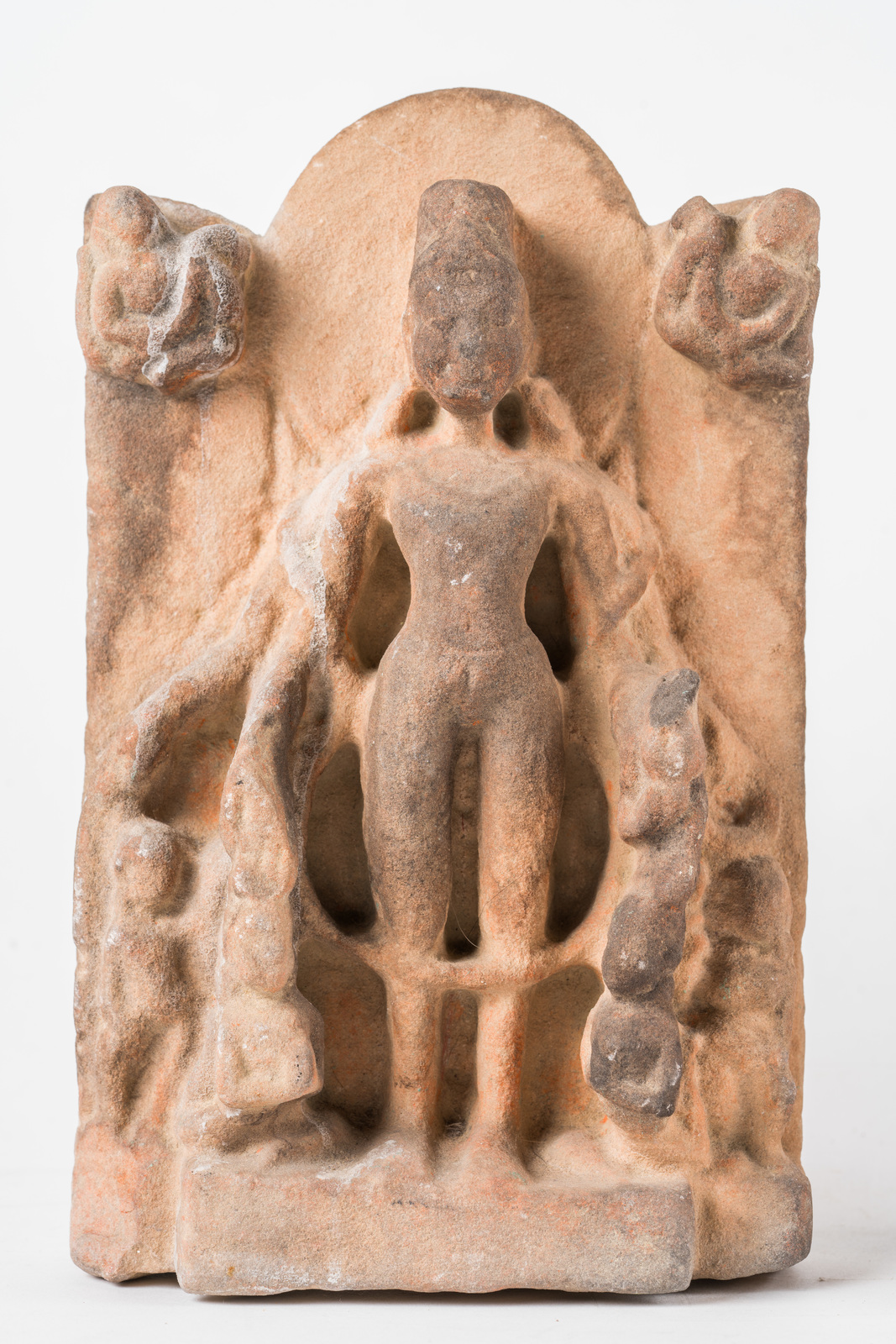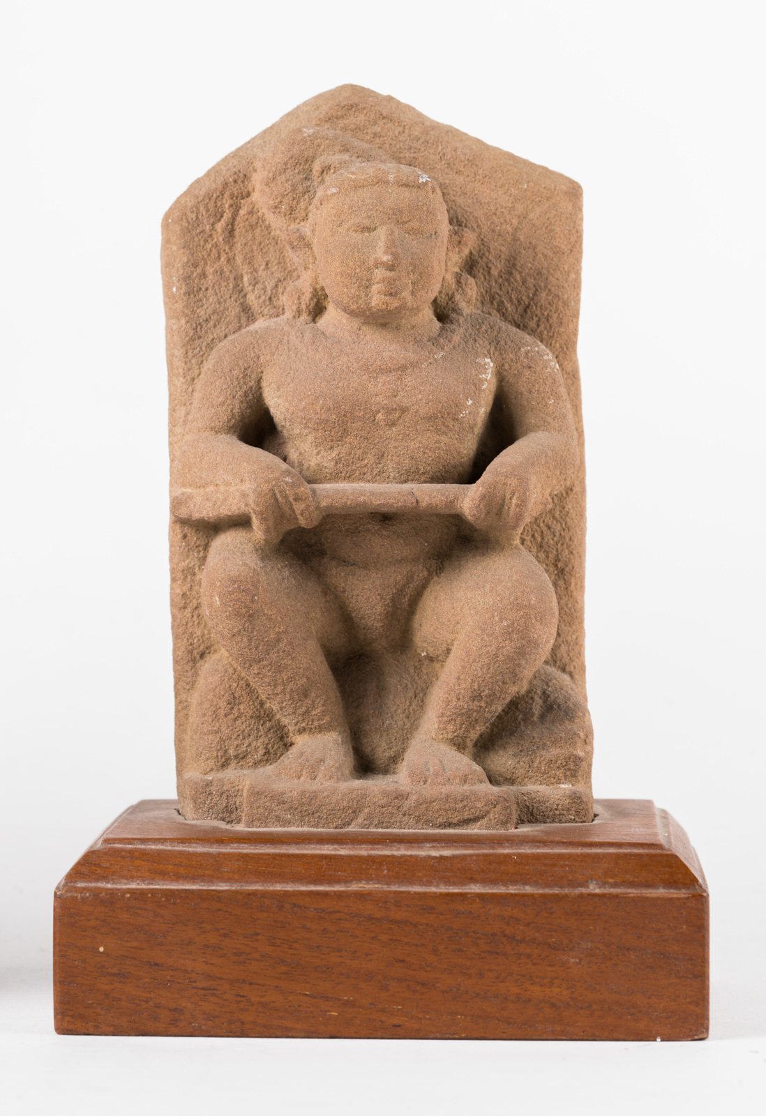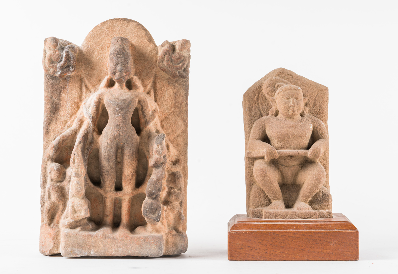 Arte Indiana Lotto composto da due frammenti di fregio in arenaria: uno forse raffigurante un guerriero e l'altro raffigurante probabilmente Vishnu