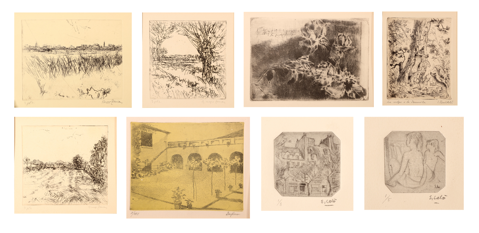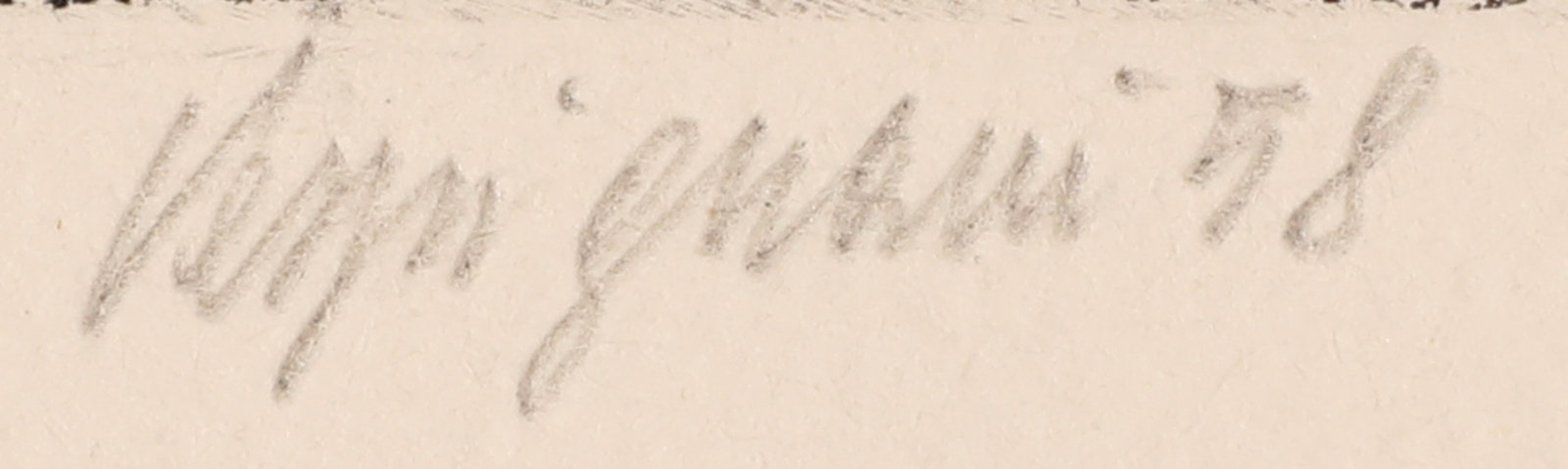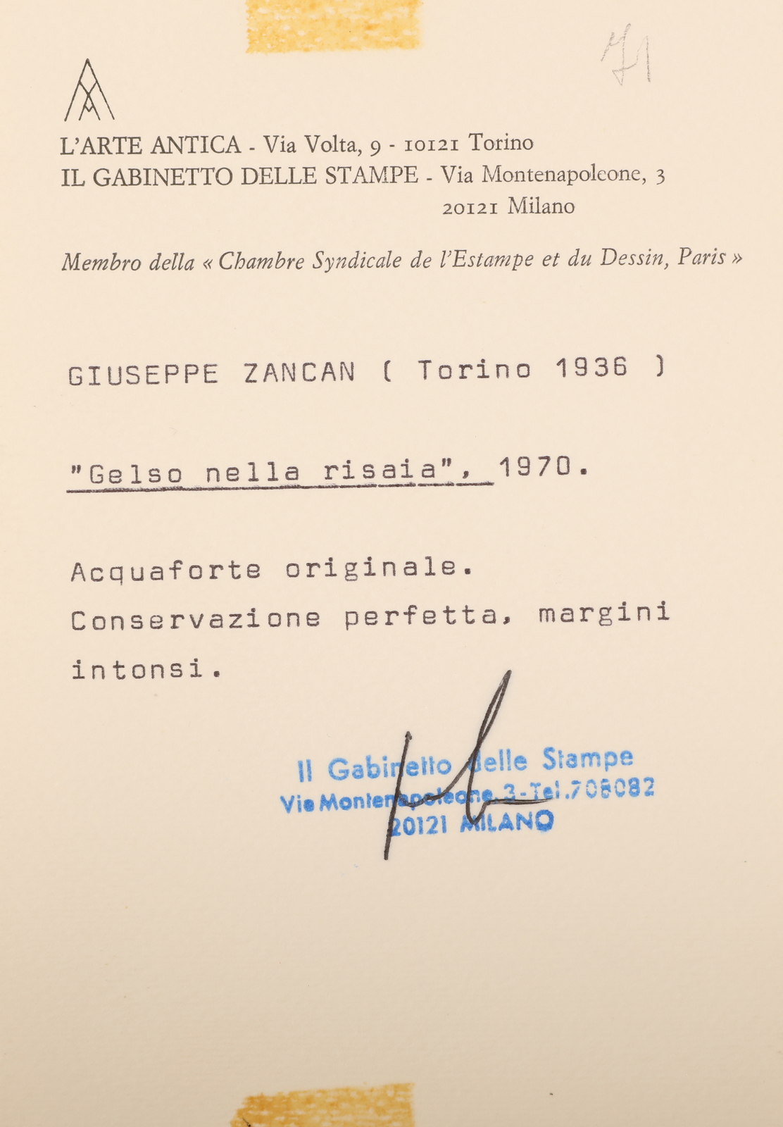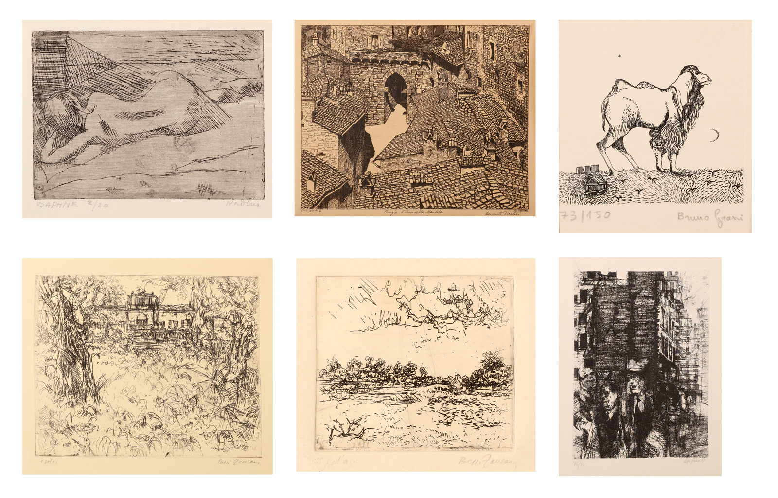 ARTISTI VARI Lot consisting of 14 sheets. Graphics. . B.Grassi: 75/150, Untitled; signature and edition lower in pencil, at the back Gian Ferrari Gallery's Christmas wishes 1977. Daphne Casorati: 2/20, Nude; title, signature and edition lower in pencil. B.Disertori: Perugia, title and signature lower. Vespignani: 76/90, edition, signature and year lower in pencil, 1958. G.Zancan: La villa nella collina torinese, P.d.a, edition, title, signature and year lower in pencil,1969. G. Zancan: On the Oreo river; p.d.a, edition, signature, title and year lower in pencil; 1970. G.Zancan; Periferia di Milano; p.d.a, edition, signature, title and year lower in pencil, 1967. G. Zancan: Il gelo nella risaia, P.d.a., edition, signature, title and year lower in pencil, 1970. G. Zancan: Campagna con il fieno tagliato, P.d.a., Edition, signature, title and year lower in pencil, 1970. L. Conconi: 6/8. Edition and signature upper in plate. E. Rambaldi: E.R, La volpe e la dondola, edition in plate, title and signature lower in pencil. S. Labò: 1/5 and 1/3. Edition and signature lower in pencil. Daphne Casorati: X/XXV, edition and signature lower in pencil.