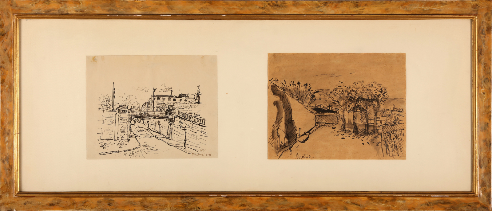 ARTISTI VARI Lot consisting of 2 works. Mixed media on paper. Cm 28,00 x 22,00. Tamburi: Paris; Title, signature and year lower right, 1938. Birolli: Untitled; Signature and year lower left, 1941. Cornice presente