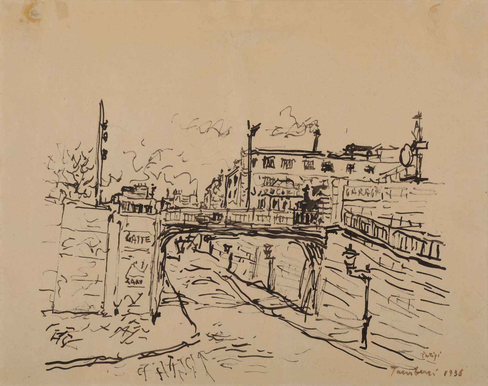 ARTISTI VARI Lotto composto da n. 2 opere. Tecnica mista su carta. Cm 28,00 x 22,00. Tamburi: Parigi; Titolo, firma e anno in basso a destra, 1938. Birolli: Senza titolo; firma e anno in basso a sinistra, 1941. Cornice presente