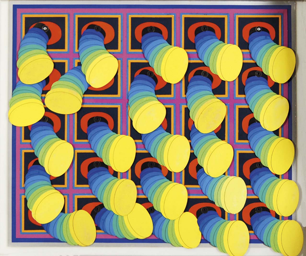SUTEJ MIROSLAV Duga Resa (Croazia) 1936 - 2005 senza titolo (primi anni '70) collage mobile in struttura di plexiglass 64x74 cm firma in basso a destra esposizioni Mostra personale Galleria Meneghini Mestre 1974 e pubblicato nel relativo catalogo