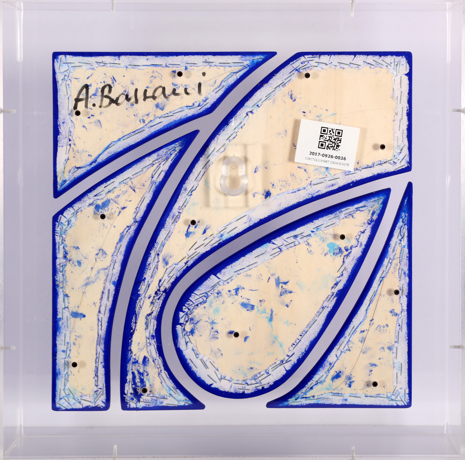 BASSANI ANDREA (n. 1954) Untitled. Acrylic on extroflexed canvas. Cm 40,00 x 40,00. Signature at the back. Artist's authenticity certificate on photo. Within plexiglass case. Cornice presente