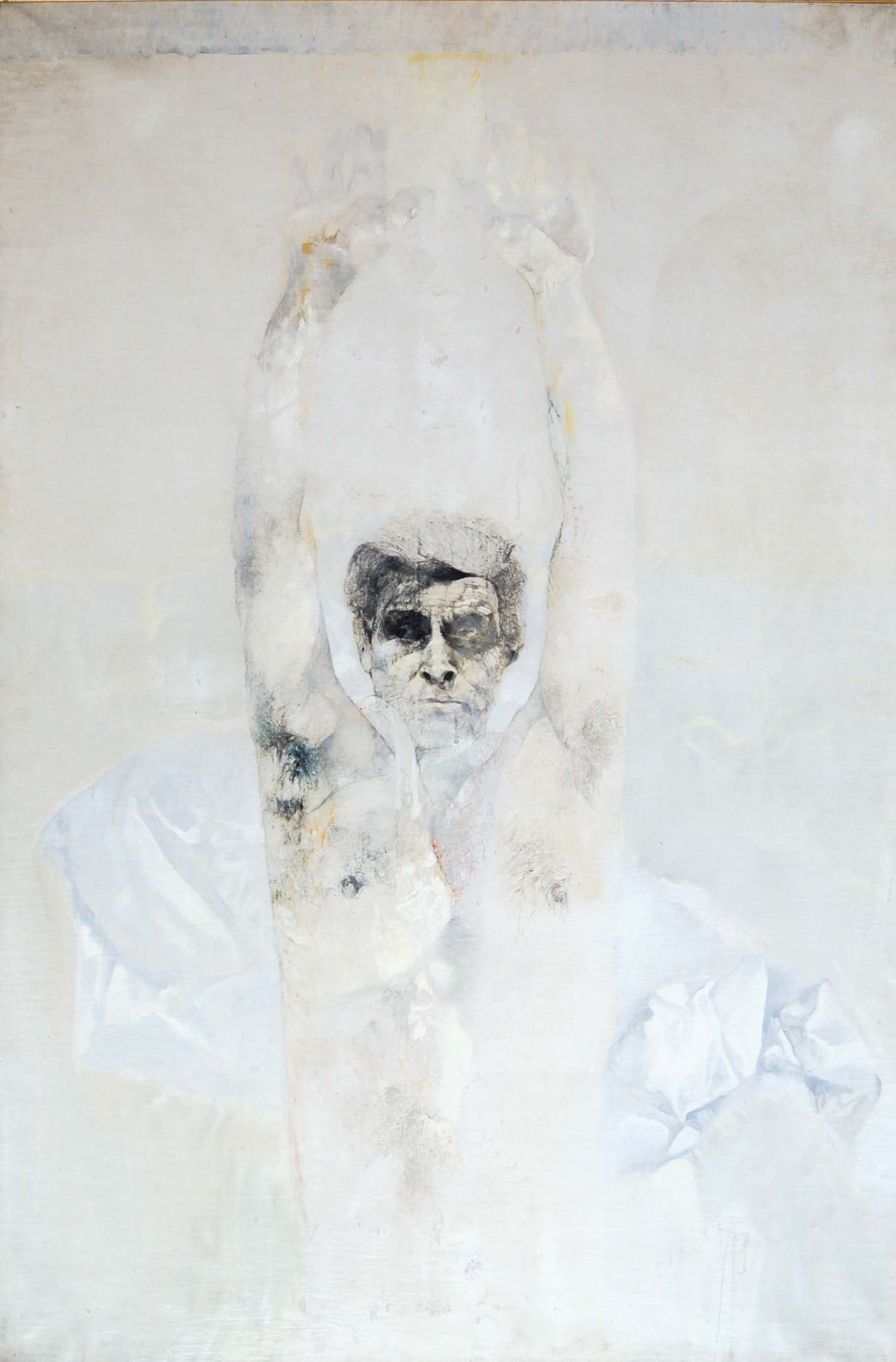 VESPIGNANI RENZO Roma 1924 - 2001 Autoritratto 1969-1970 olio su tela 195x130 cm firma al retro autentica dell'Archivio della Scuola Romana nr. Arch. 289/02 su foto esposizioni Protagonisti nell'Arte Roma - etichetta e timbri al retro