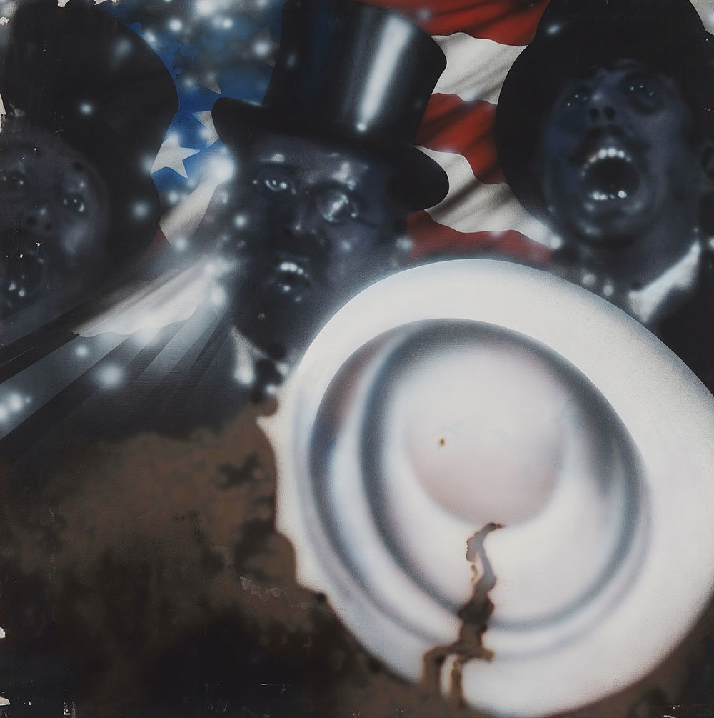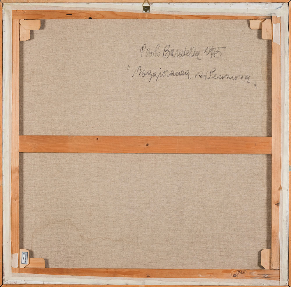 PAOLO BARATELLA 1935 Maggioranza silenziosa, 1975 Tecnica mista su tela, cm. 100 x 100 Firmato e datato sul retro Timbro D’Ars, Milano sul retro L’opera presenta delle piccole cadute di colore lungo i bordi Prov. Collezione Fondazione D’Ars Oscar Signorini Onlus, Milano