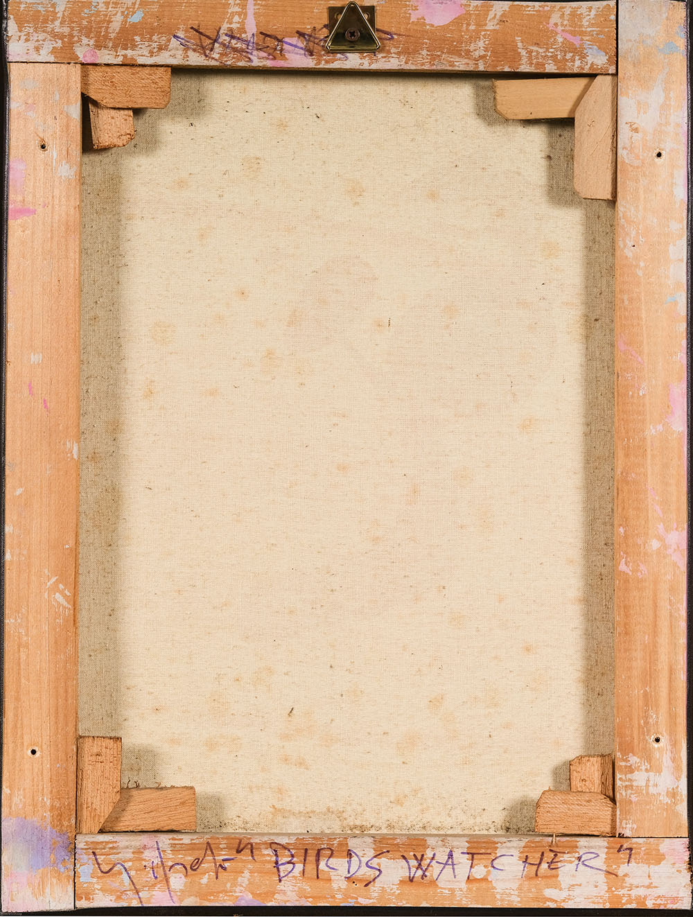 SERGIO DANGELO 1932 Birds watcher Tecnica mista e collage su tela, cm. 40 x 30 Firmato in basso Prov. Collezione Privata