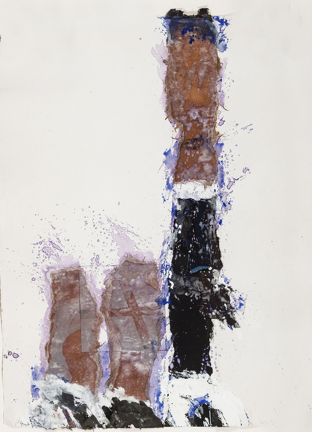 JOHN FRANKLIN KOENIG 1924 - 2008 Lartnig, 1986 Acquerello e collage su carta, cm. 78 x 57 Firmato e datato in basso a sinistra Prov. Collezione Privata