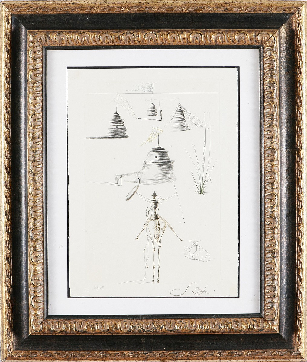 DALI' SALVADOR (1904 - 1989) Don Quichotte. Acquaforte, cm 33x45. Misure disegno: altezza 40 cm, larghezza 26 cm. Tir .82/125 a matita in basso a sinistra. Firmato a matita in basso a destra. Cornice presente.