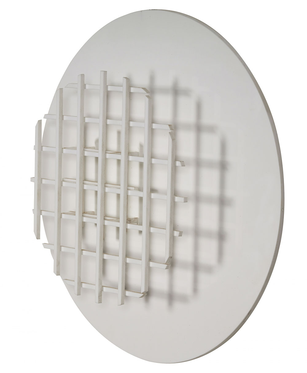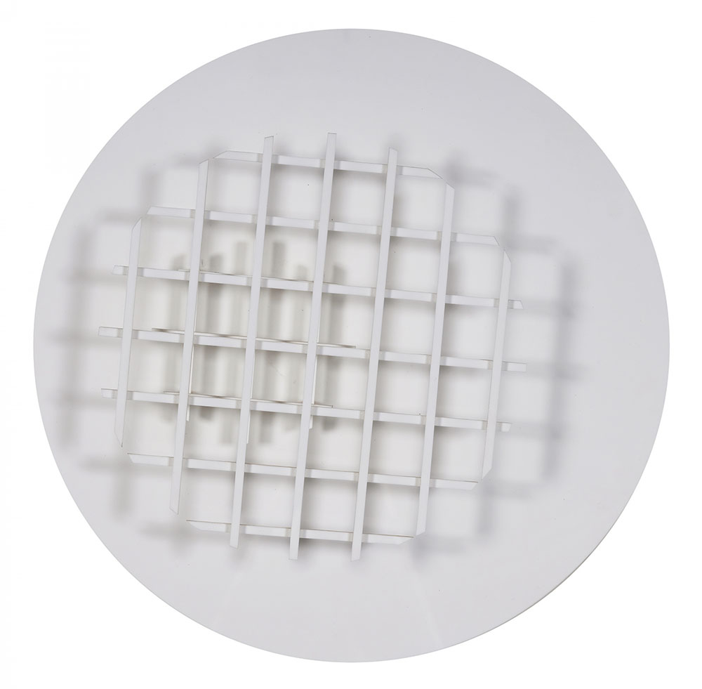 SALVADOR PRESTA 1925 Senza titolo, 1972 Griglie in plexiglass sovrapposte applicate su tavola rotonda, diametro cm. 47, profondità cm. 6,5 Firmato e datato sul retro Prov. Collezione Privata