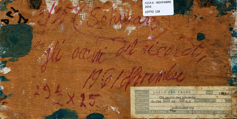 LUCIO DEL PEZZO 1933 Gli occhi del ricordo, 1961 Polimaterico su tavola, cm....