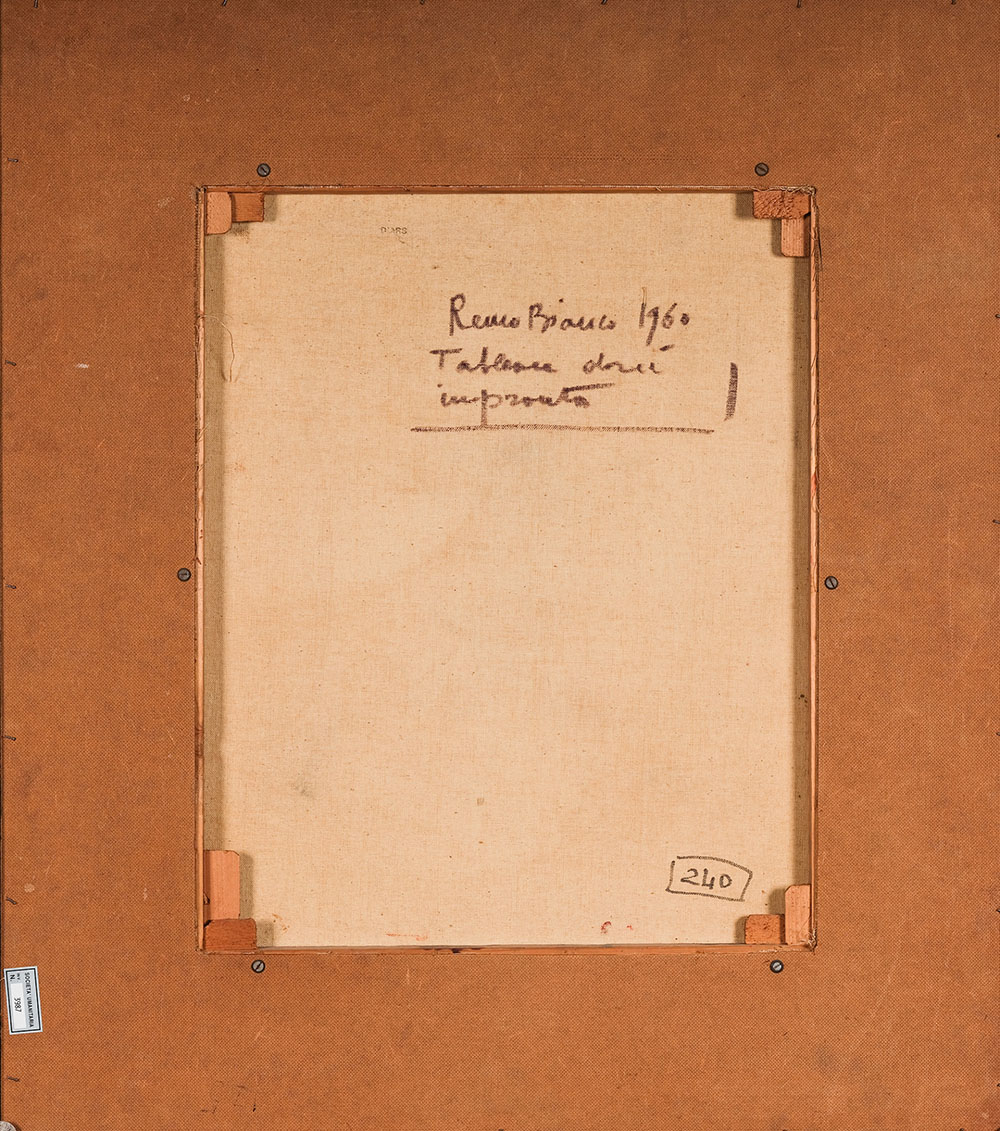 REMO BIANCO 1922 - 1988 Tableau dorè impronta, 1960 Tecnica mista e foglia d’oro su tela, cm. 60 x 50 Firmato e datato sul retro Timbro D’Ars, Milano sul retro Prov. Collezione Fondazione D’Ars Oscar Signorini Onlus, Milano