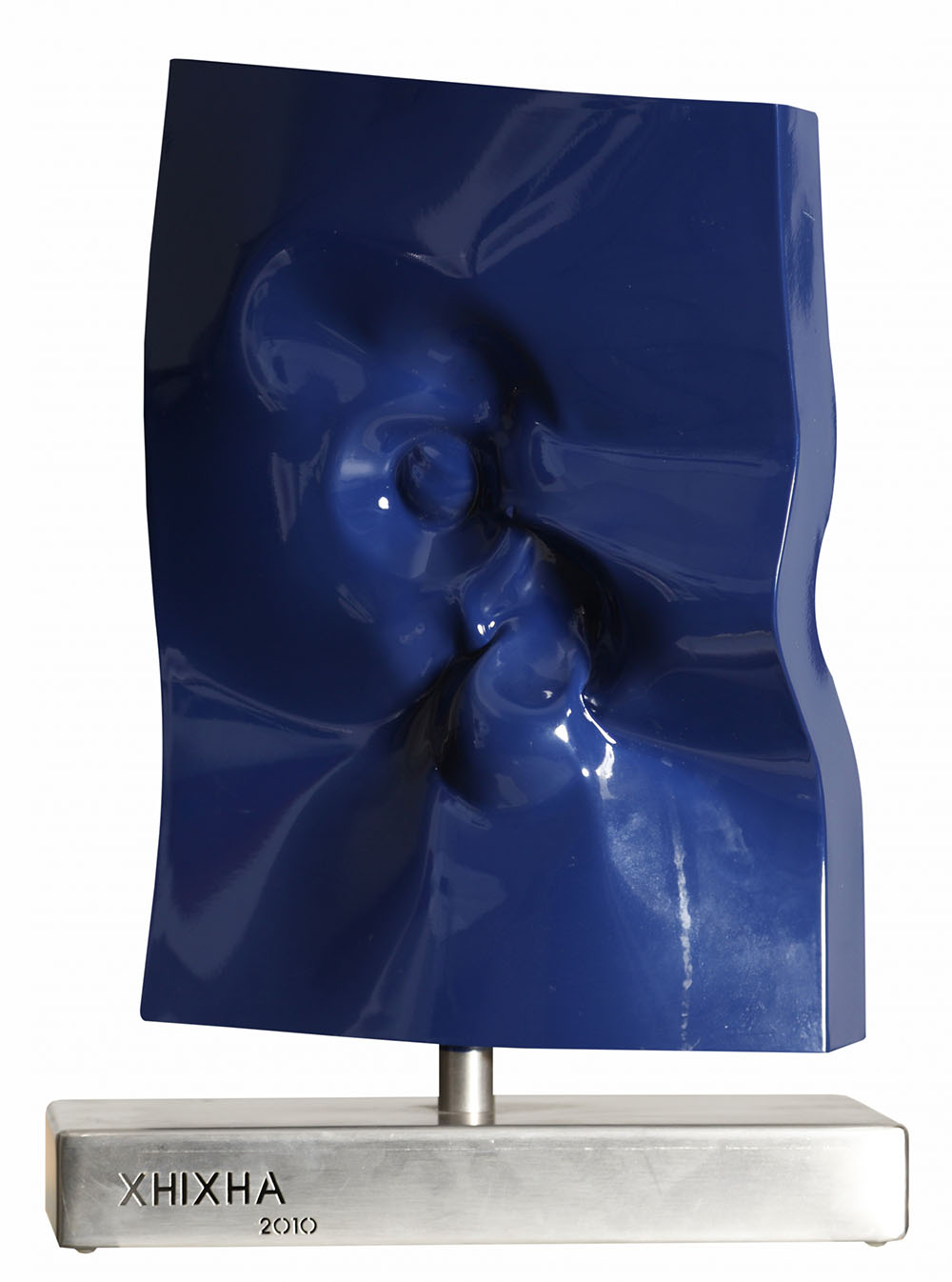 HELIDON XHIXHA 1970 Energia attraverso il blu, 2010 Scultura in ferro verniciato a forno, cm. 49 x 36 x 14, base in ferro cm. 8 x 36 x 14 Certificato di autenticità a cura dell’artista Prov. Collezione Privata