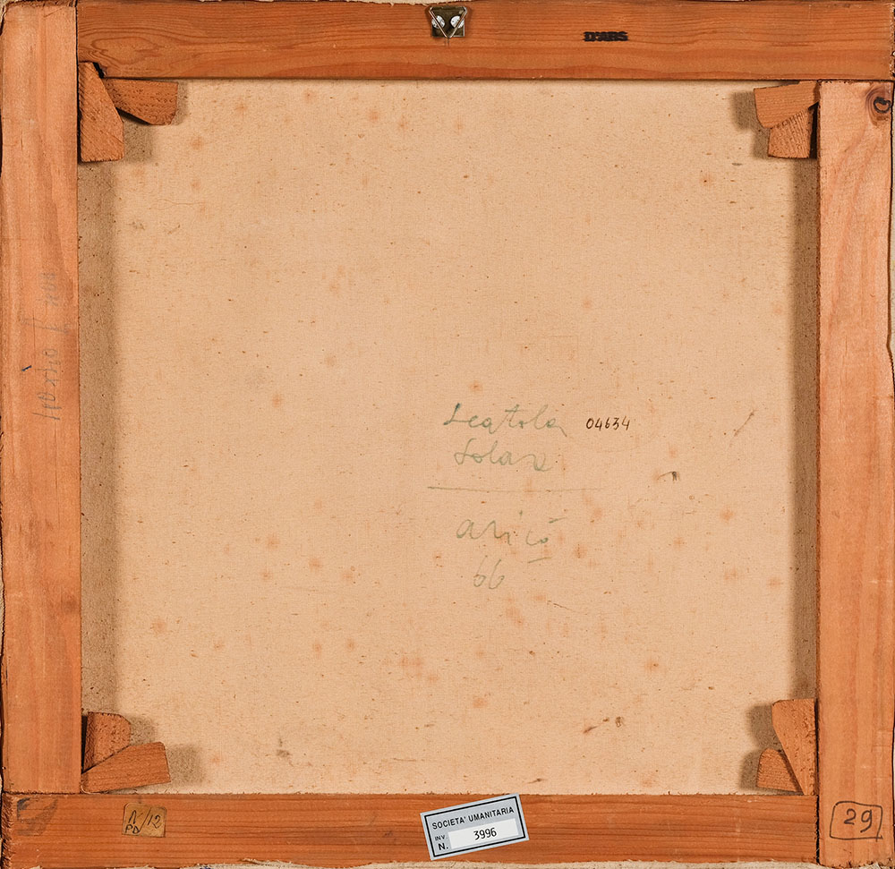 RODOLFO ARICO' 1930 - 2002 Scatola solare, 1966 Olio su tela, cm. 40 x 40 Firmato e datato sul retro Timbro D’Ars, Milano sul retro Prov. Collezione Fondazione D’Ars Oscar Signorini Onlus, Milano