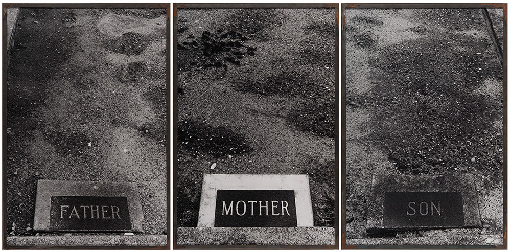 SOPHIE CALLE 1953 Father Mother Son (The Graves, #43), 1991 3 fotografie in bianco e nero, cm. 58 x 38,5 cad. Opera n. 3/7 Etichetta Paula Cooper Gallery, New York sul retro Etichetta Donald Young Gallery, Chicago sul retro Etichetta Cornette de Saint Cyr maison de ventes, Parigi sul retro Timbro Artech/Denman, Seattle sul retro Prov. Collezione Privata