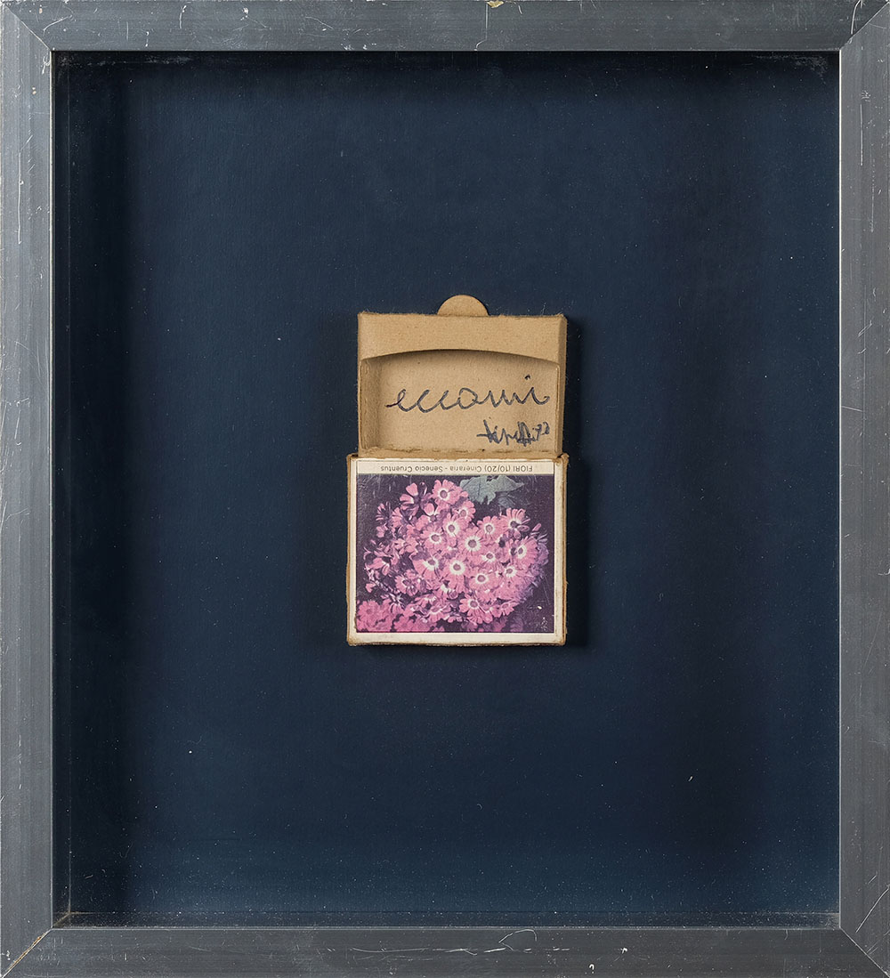 VINCENZO AGNETTI 1926 - 1981 Eccomi, 1972 Pennarello su scatola di cerini, cm. 8 x 5 x 1 Firmato e datato Certificato di Autenticità a cura dell’Archivio Vincenzo Agnetti Prov. Collezione Luca Crippa Prov. Collezione Privata