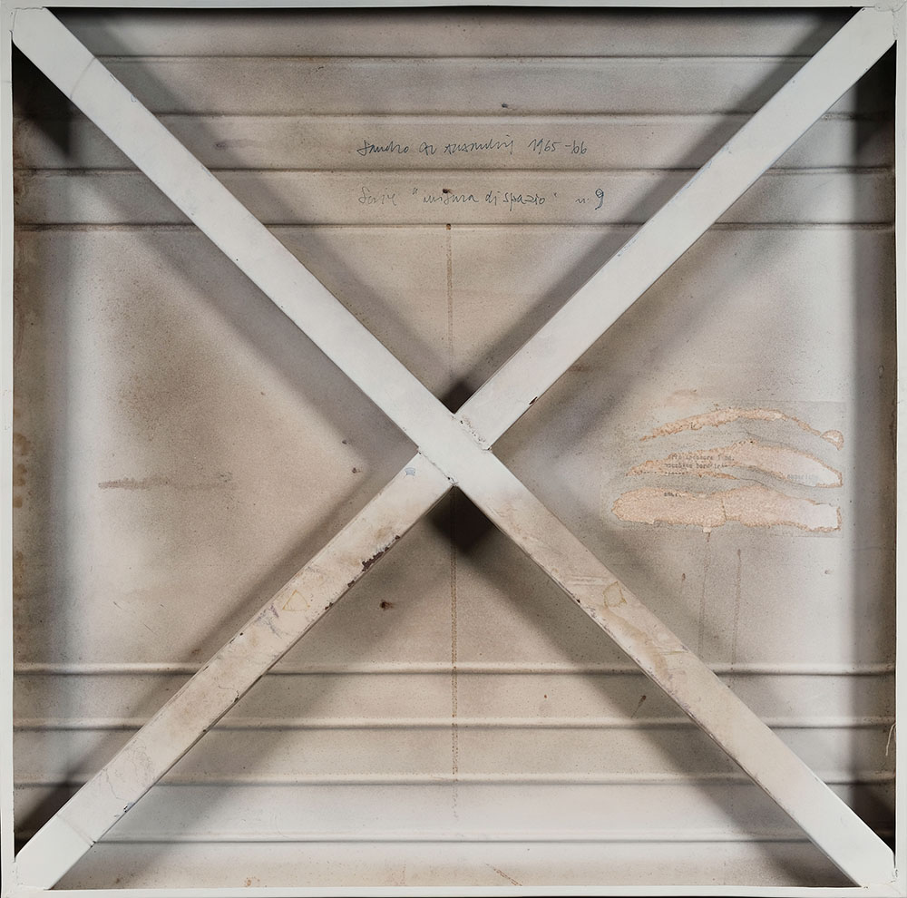 SANDRO DE ALEXANDRIS 1939 Misura di spazio n. 9, 1965-66 Smalto su lamiera lavorata, cm. 80 x 80 Firmato e datato sul retro Prov. Collezione Privata