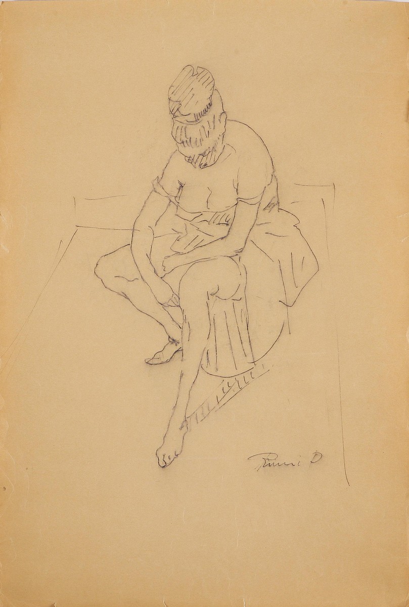 RUMI DONNINO (1906 - 1980) Donna in un interno. China su carta. Cm 49x34. Firma in basso a destra.