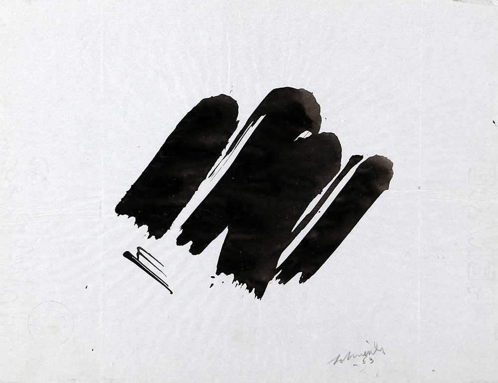 GERARD SCHNEIDER 1896 - 1986 Senza titolo, 1963 Inchiostro su carta, cm. 21 x 27 Firmato e datato in basso a destra Timbro Galleria Lorenzelli, Bergamo sul retro Prov. Collezione Privata