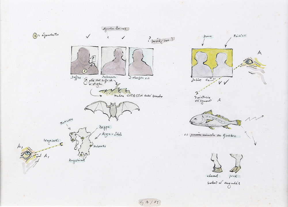 GIANFRANCO BARUCHELLO 1924 Traiettoria di sguardi, 1985 Acquerello e grafite...