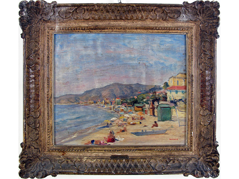 Mario Somasca (1911-1952), Olio su compensato,Alassio 33x38,5 cm
