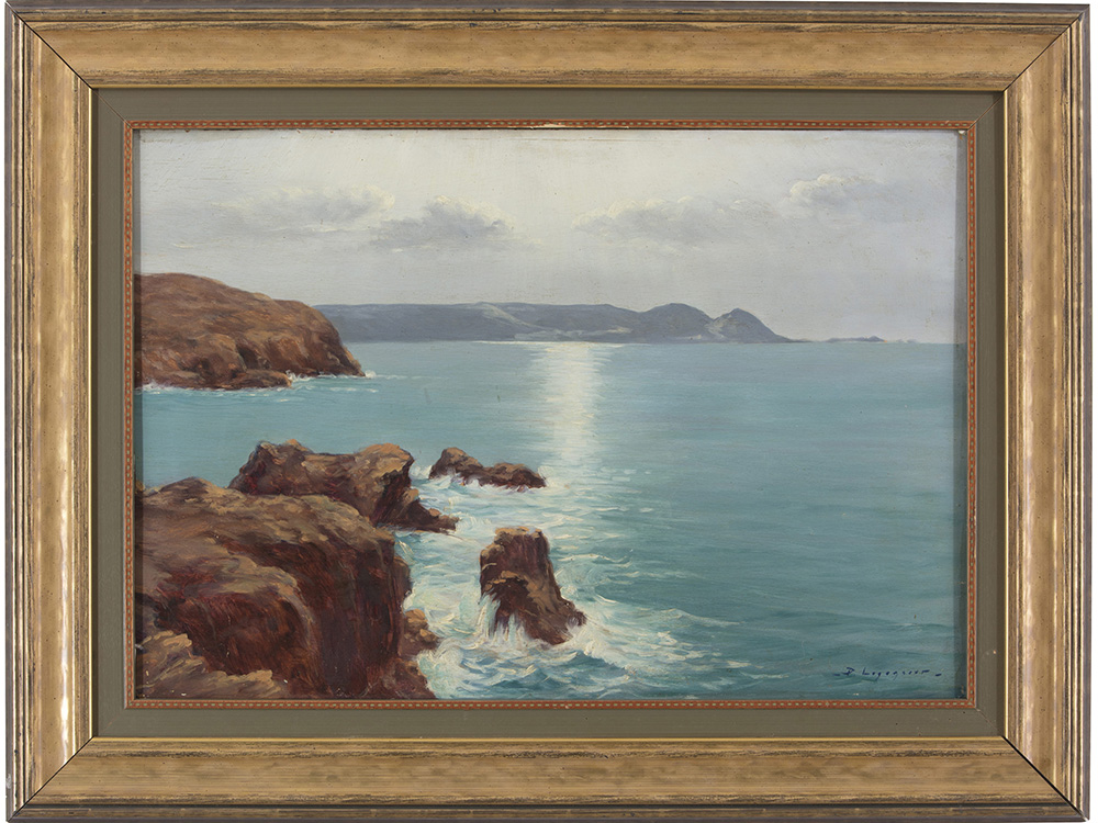 Firma illeggibile (XX secolo), Olio su compensato,Marina 52x72 cm