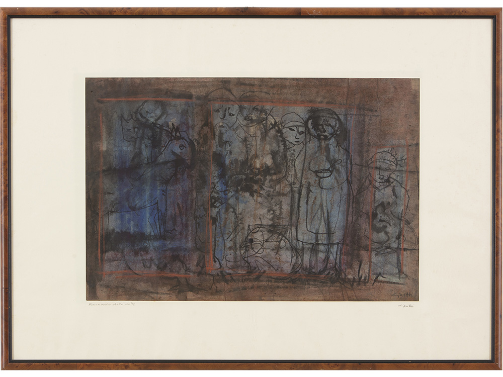 Franca Ghitti (1932), Tecnica mista su carta,Racconti della valle 32x48 cm