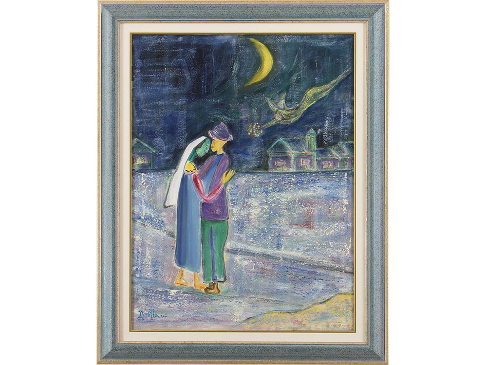 Firma illeggibile (XX secolo), Olio su tela,L'abbraccio della notte 80x60 cm