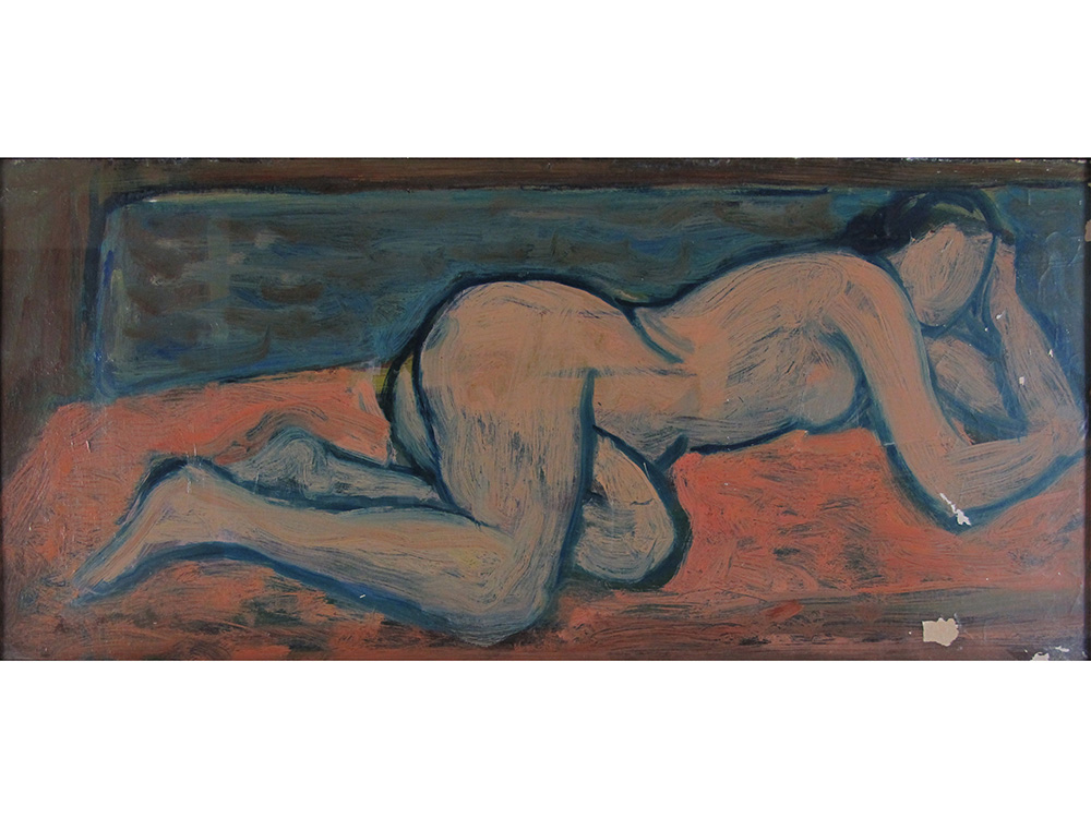 Anonimo (XX secolo), Olio su cartoncino,Nudo 60x27,5 cm