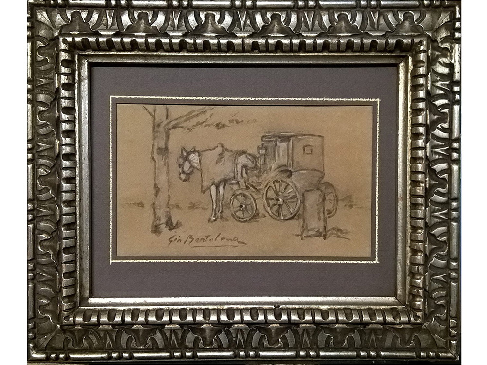 Giovanni Bartolena (1866-1942), Tecnica mista disegno e acquerello,La sosta 13x20 cm