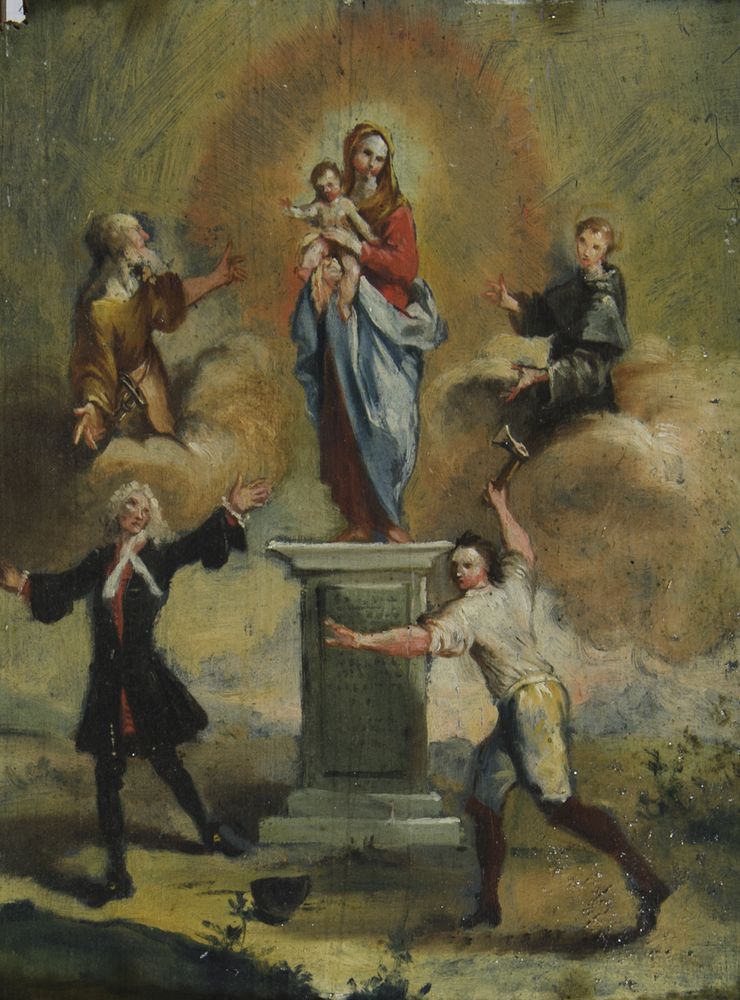Scuola veneta del XVIII secolo "Santi e Madonna" cm. 32x24 - ex voto dipinto su tavola