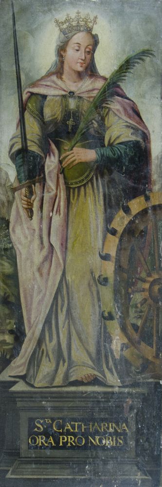 Maestro del XVI secolo "Santi cm. 110x40 - olio su tavola dipinto sui due lati