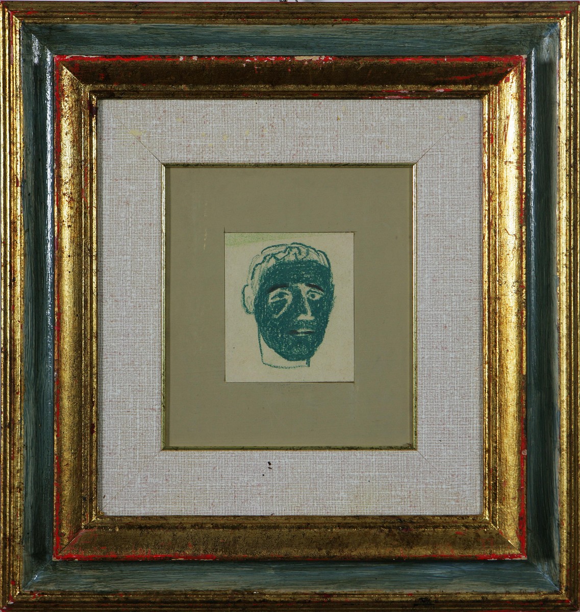 SANFILIPPO ANTONIO (1923 - 1980) Autoritratto. Pastello su cartoncino, cm 10,5x9. Provenienza: collezione Zavattini. Al retro cartiglio della Galleria Annunciata, Milano. Cornice presente.