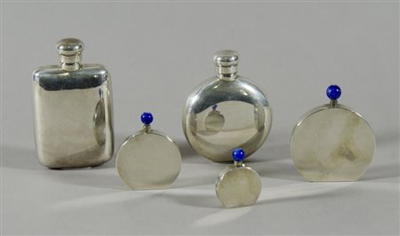 Lotto 347 | Lotto di 5 bottigliette da viaggio in argento. gr. tot 300.