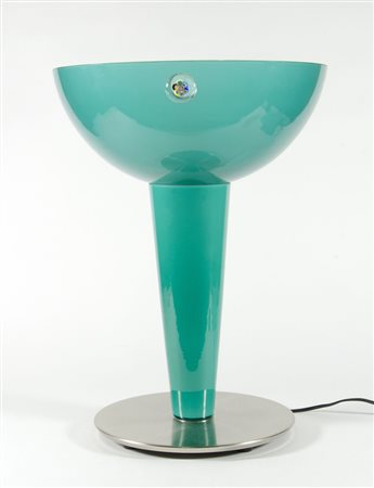 Lampada da tavolo in vetro verde con montatura in metallo cromato. H. cm. 54.