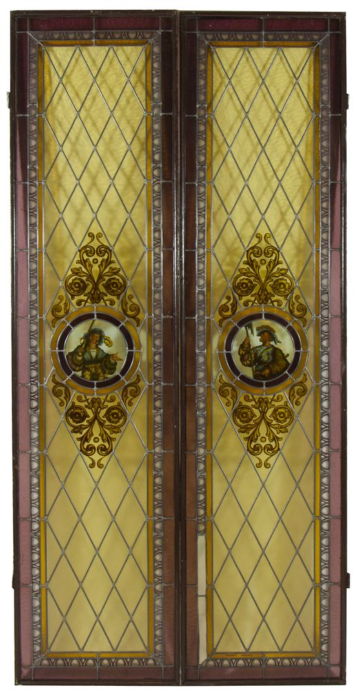 Coppia di vetrate piombate raffiguranti cavalieri. Firmate Gianina Torino....