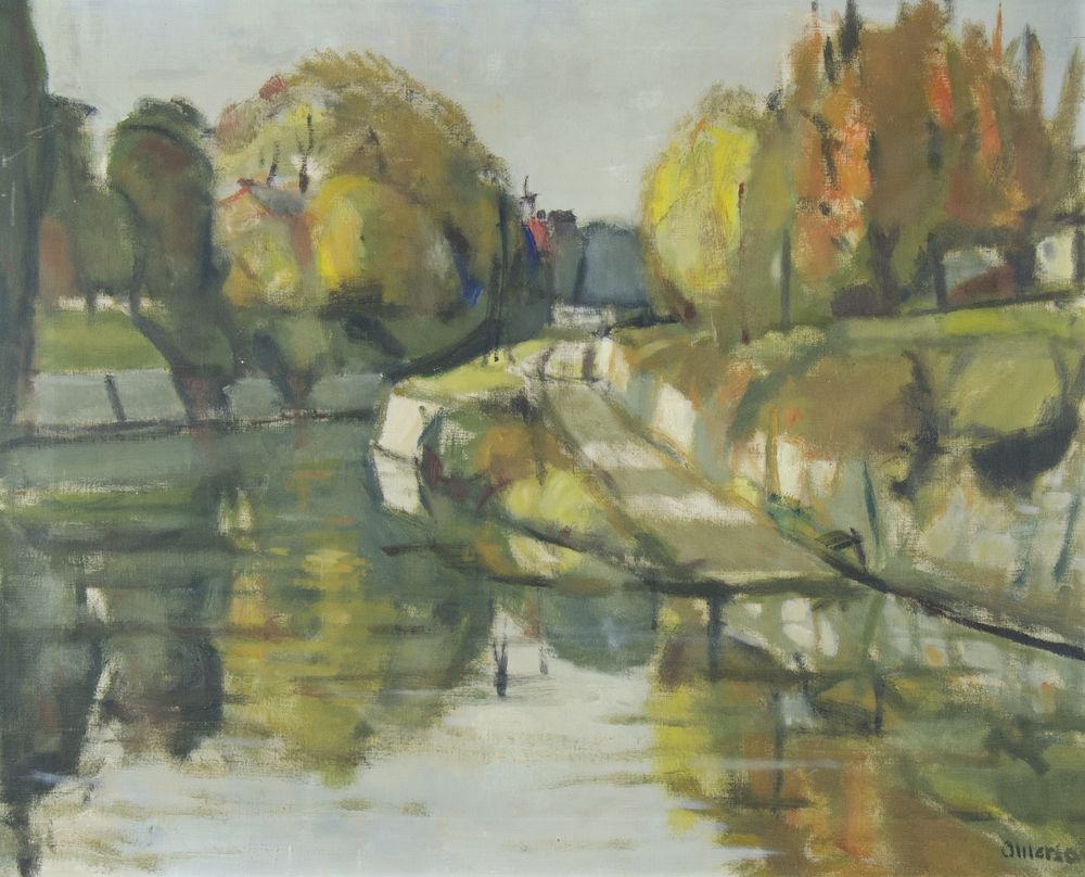 Nikolaj Omersa 1911-1981 "Autunno sul fiume" cm. 65x80 - olio su tela Firmato b. a d.