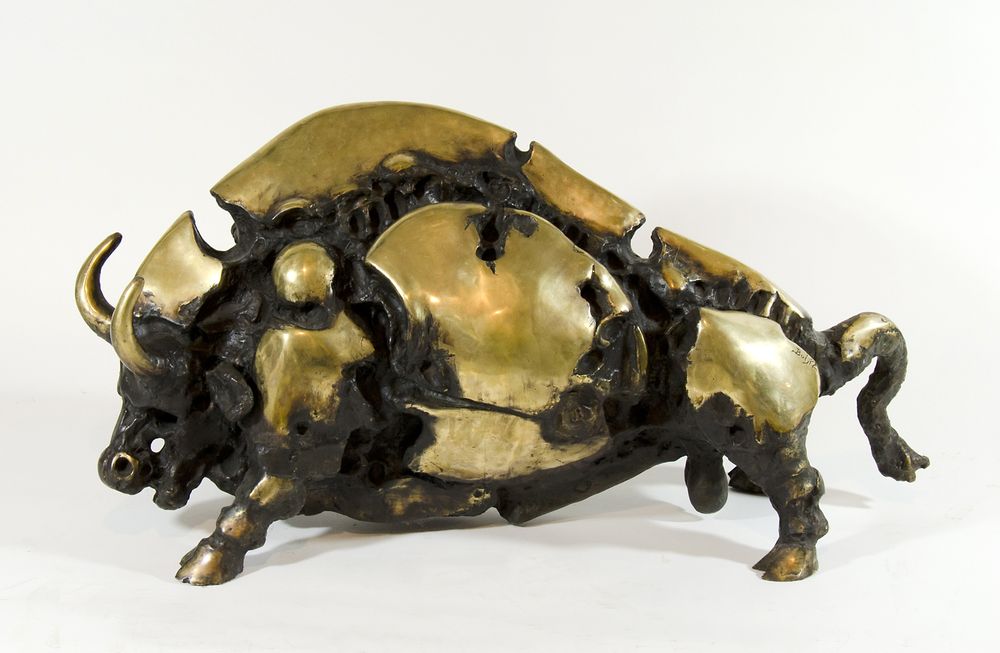Janez Boljka 1931-2013 "Toro arrabbiato" lung. cm. 120 - scultura in bronzo Firma incisa e marchio dell'Artista.