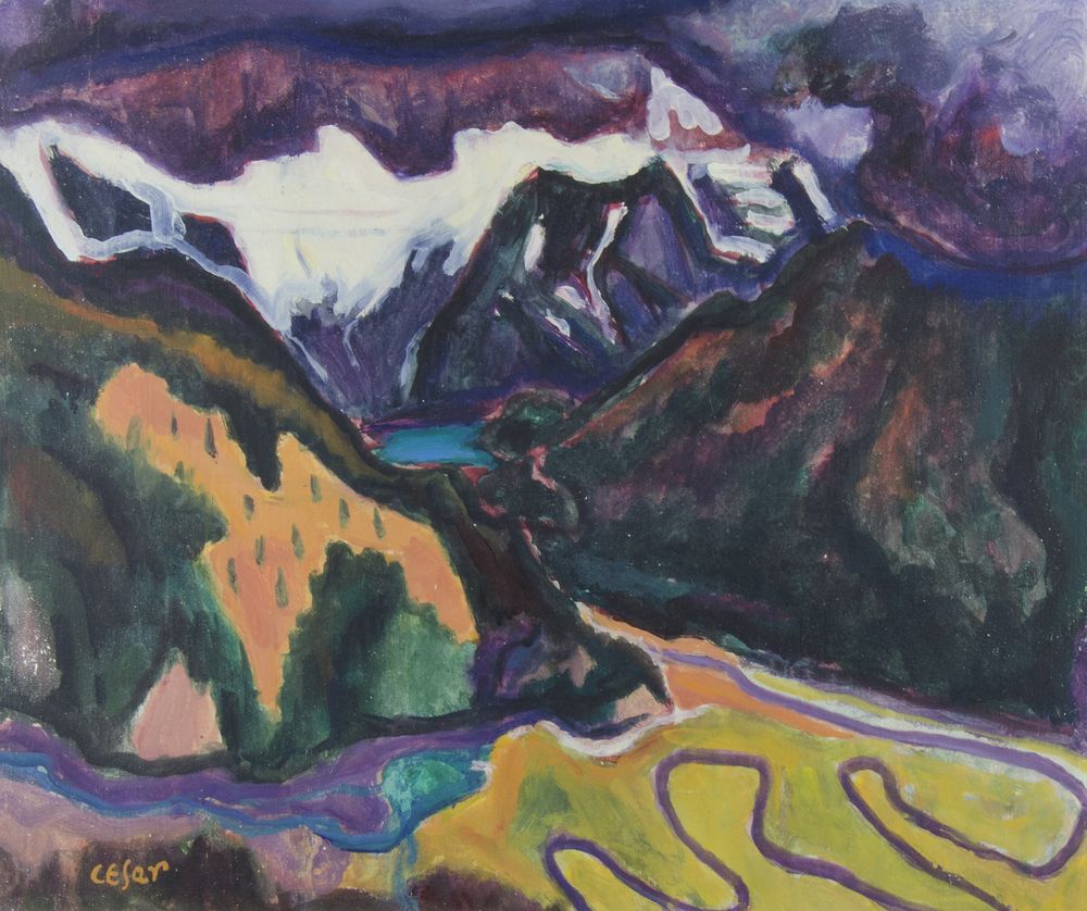 Joze Cesar 1907-1980 "Lago di Auronzo" cm. 50x60 - tecnica mista su...