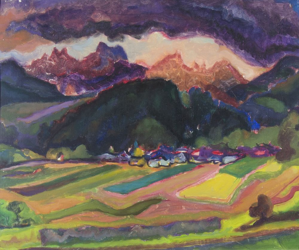 Joze Cesar 1907-1980 "Temporale sulle Dolomiti" cm. 50x60 - tecnica mista su compensato Autentica su fotografia del figlio dell'Artista.