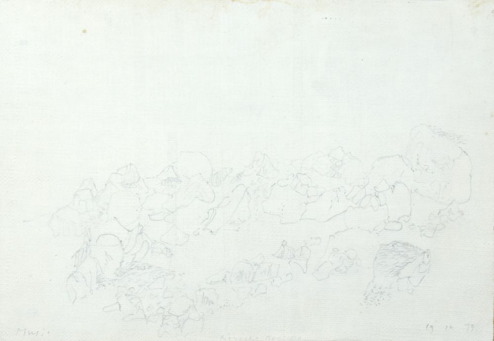 Anton Zoran Music Gorizia 1909-2005 "Paesaggio roccioso" cm. 20x30 - matita su carta su tela Firmato b. a s. e datato '79. Al retro timbro Galleria Colussa Udine.
