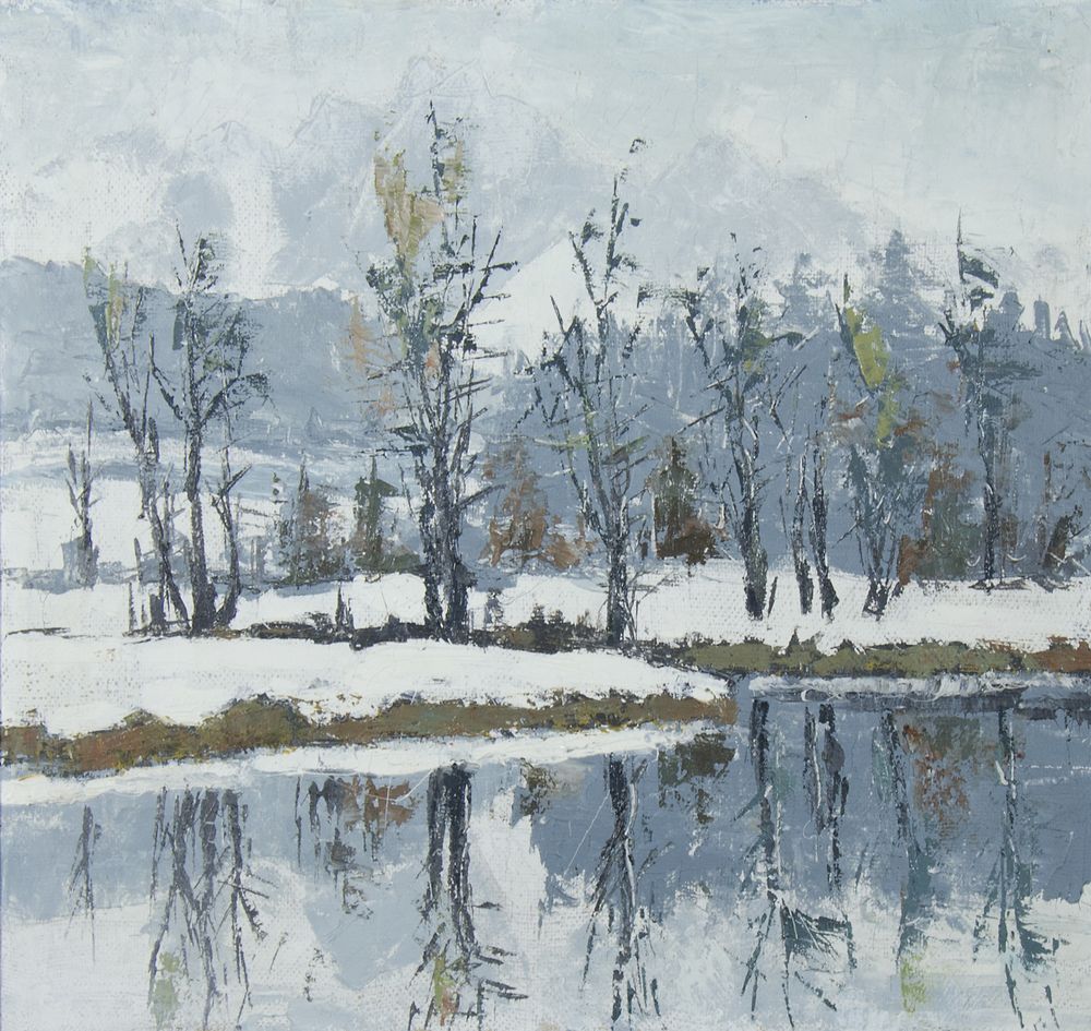 Peter Adamic (?) 1929-1990 "Paesaggio innevato" cm. 45x50 - olio su tela Varie iscrizione al retro sul telaio.
