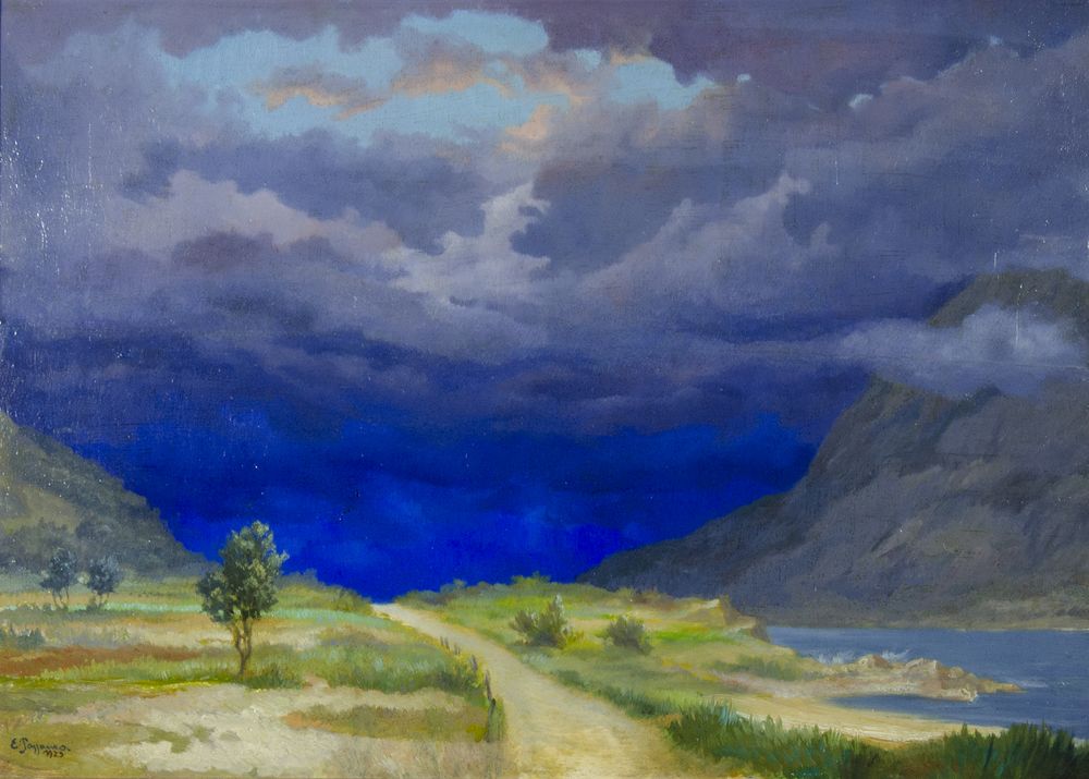 Edmondo Passauro 1893-1969 "Burrasca imminente" cm. 38x53 - olio su tavoletta Firmato b. a s. e datato 1923.