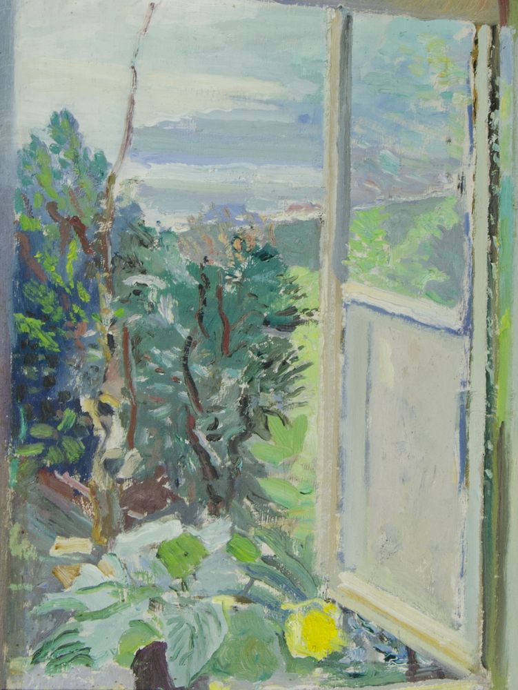 Vittorio Bergagna (attr.) Trieste 1884-1965 "Veduta dallo studio" cm. 58x40 - olio su tavola Firmato al reto e datato '56.