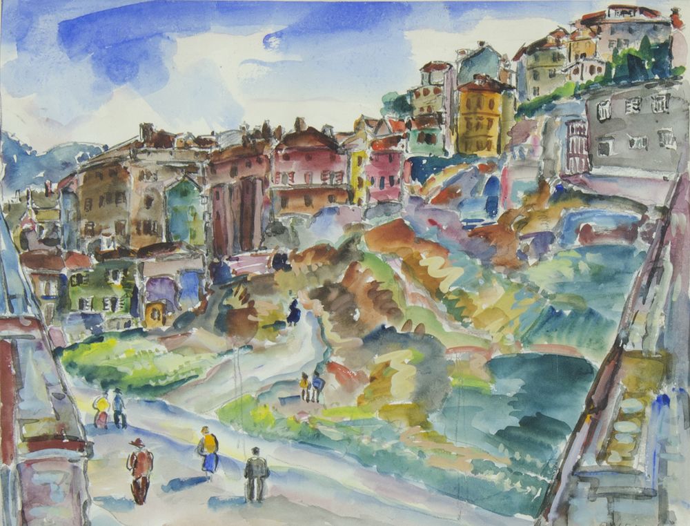 Adolfo Levier Trieste 1873-1953 "Angolo di città" cm. 40x50 - acquerello su carta Firmato b. a d.