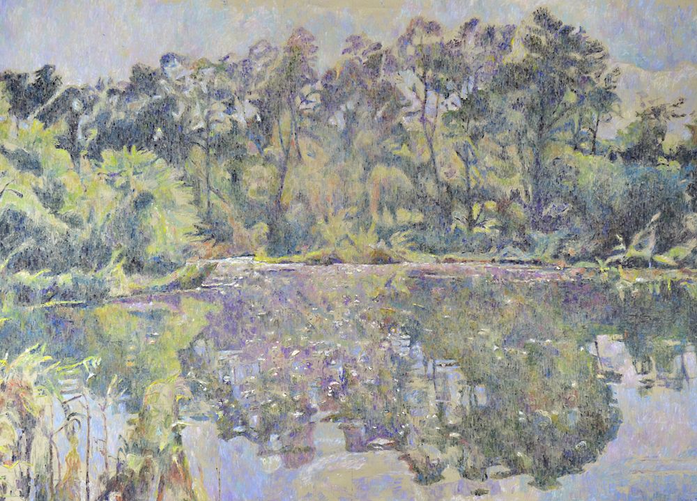 Polona Petek Freiburg In Breisgau 1970 "Rokav ob Dravi" (2008) cm. 145x210 - carboncino ed olio su tela Firmato e datato b. a d. con etichetta al retro. Esposiz: Galerija Lek Ljubljana 2008, Mestni muzej Idrija 2009, Miheli?eva galerija Ptuj 2009, Mestna galerija Nova Gorica 2011, Narodni dom Trieste 2012. Pubbl: cat. Galerija Lek Ljubljana 2008.