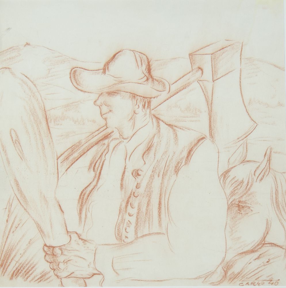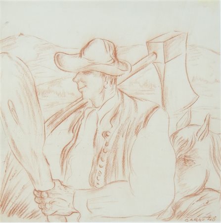 Ivan Cargo 1898-1958 "Martin Krpan" cm. 42x41 - gessetti su carta