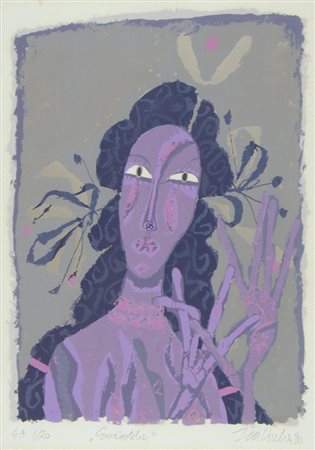 Joze Ciuha 1924-2015 "Evridika" cm. 53x40 - litografia a colori Firmato b. a d. e datato '80 Esemplare 1/20.