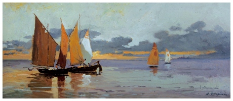 A. GIORGINI Senza titolo Olio su cartone 16,5 x 38,5. Firma in b. a d. B.A.: 50