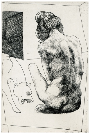 UGO ATTARDI Sori 1923 – Roma 2006 Il passo unghiato del cane 1970 Acquaforte es.15/75. Firma e data in b. a d. (50 x 34,5 foglio – 17,5 x 11,5 inc.) L’opera fa parte della cartella “Mitobiografia” prodotta da Francesco Alfani e curata da Giuseppe Montanucci, contenente 9 acqueforti tirate presso la Scuola Internazionale d’Arte Grafica. Tiratura: 75 es. num. arabi + 25 es. num. romani. Lastre biffate. B.A.: 50