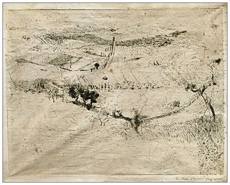 LUIGI BARTOLINI Cupramontana 1892 – Roma 1963 La strada d’Ancona 1931 Acquaforte su carta Cina es. prova d’artista. Titolo, tecnica, data e firma in b. a d.; sulla lastra in b. a s.: sigla della firma, data e titolo. (26,8 x 34 foglio – 24,8 x 32,5 inc.) Nel 1962 l’opera tirata in 75 es. num. arabi + alcuni es. p.d.a. su carta Fabriano CM, fu inserita nella cartella “Canti” di Giacomo Leopardi contenente 5 poesie e 2 incisioni di Bartolini, Editore-Stampatore Bucciarelli, Castelplanio. B.A.: 290